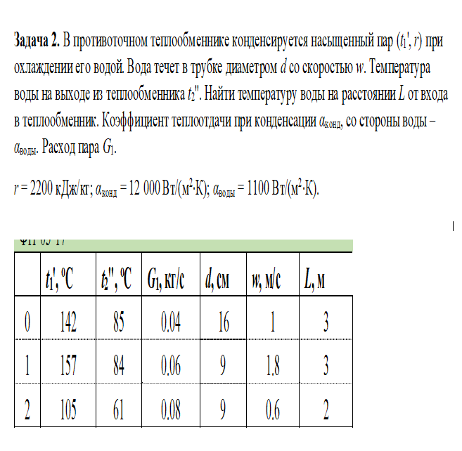 Другое: Задача 2 - В противоточном теплообменнике конденсируется насыщенный пар