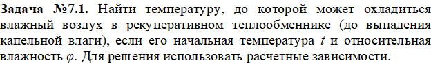 Другое: Задача 7.1 - Найти температуру, до которой охладиться влажный воздух в рекуперативном теплообменнике