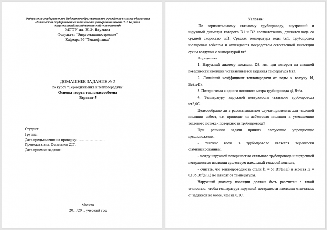 ДЗ 2: Теплопередача через двухслойную цилиндрическую стенку вариант 5