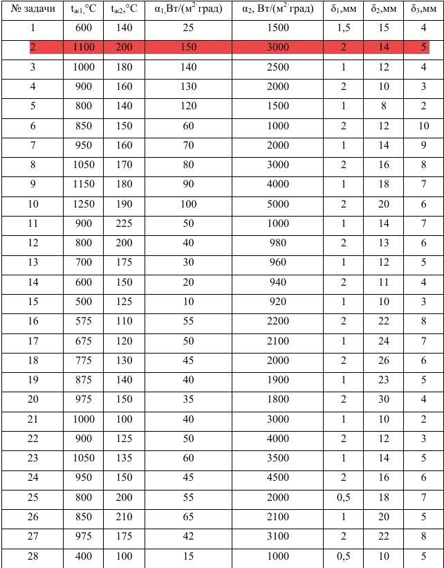 ДЗ 1: Теплопередача через многослойную плоскую стенку вариант 2