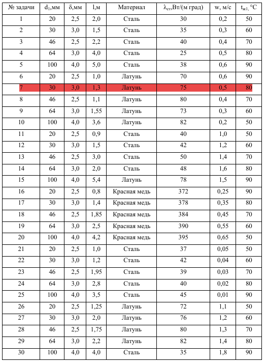 ДЗ 2: Конвективный теплообмен при вынужденном и свободном движении жидкости вариант 7