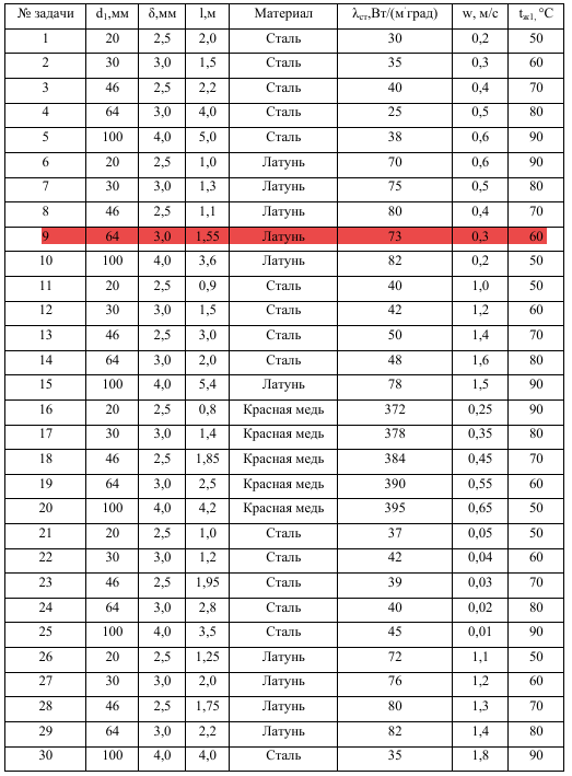 ДЗ 2: Конвективный теплообмен при вынужденном и свободном движении жидкости вариант 9