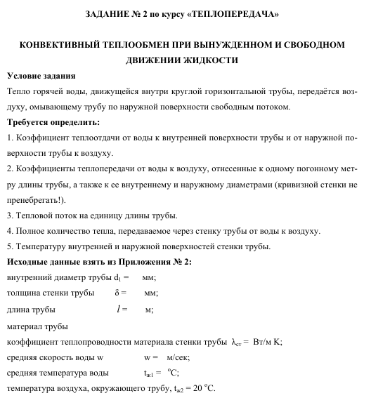 ДЗ 2: Конвективный теплообмен при вынужденном и свободном движении жидкости вариант 10