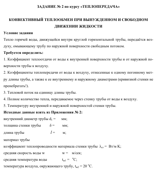 Главная » Учебные материалы » Тепломассообмен (ТМО) » Домашние задания » МГТУ им. Н.Э.Баумана » Несколько классов/семестров » Номер 2 » Вариант 11 » Конвективный теплообмен при вынужденном и свободном движении жидкости