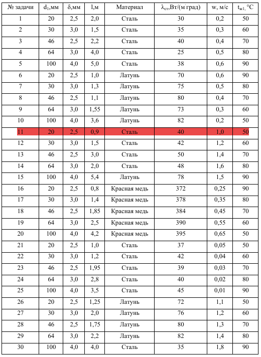 ДЗ 2: Конвективный теплообмен при вынужденном и свободном движении жидкости вариант 11
