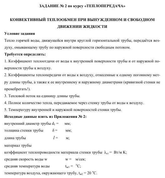 Главная » Учебные материалы » Тепломассообмен (ТМО) » Домашние задания » МГТУ им. Н.Э.Баумана » Несколько классов/семестров » Номер 2 » Вариант 12 » Конвективный теплообмен при вынужденном и свободном движении жидкости