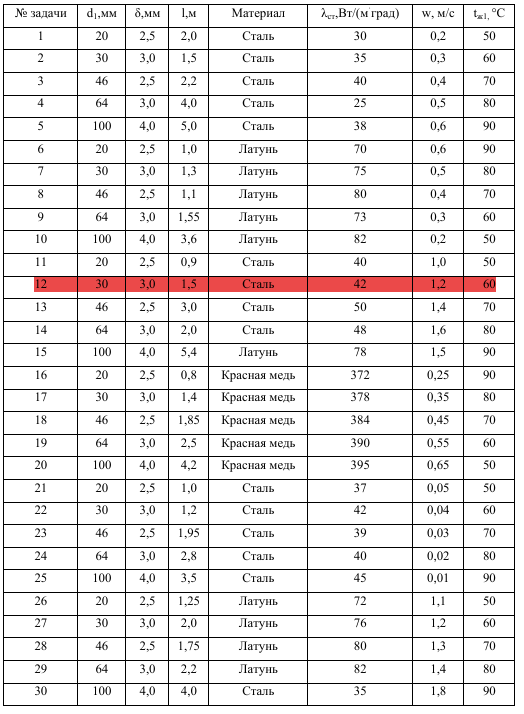 ДЗ 2: Конвективный теплообмен при вынужденном и свободном движении жидкости вариант 12