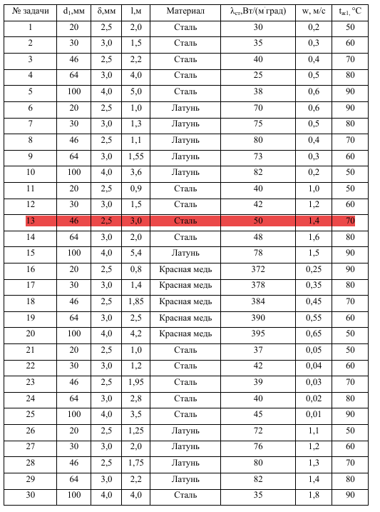 ДЗ 2: Конвективный теплообмен при вынужденном и свободном движении жидкости вариант 13