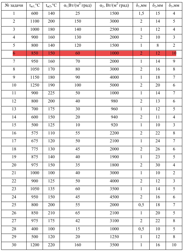 ДЗ 1: Теплопередача через многослойную плоскую стенку вариант 6