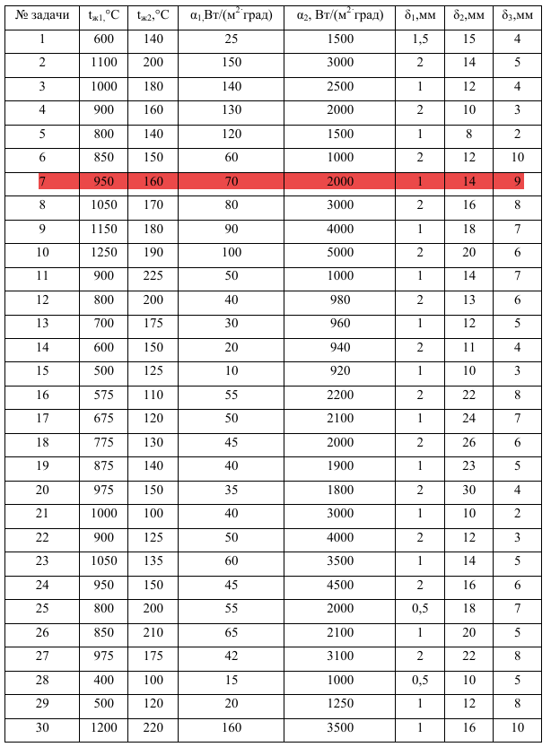 ДЗ 1: Теплопередача через многослойную плоскую стенку вариант 7