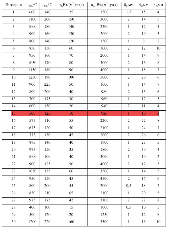 ДЗ 1: Теплопередача через многослойную плоскую стенку вариант 15