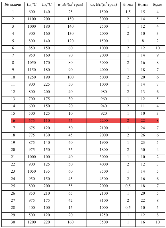 ДЗ 1: Теплопередача через многослойную плоскую стенку вариант 16
