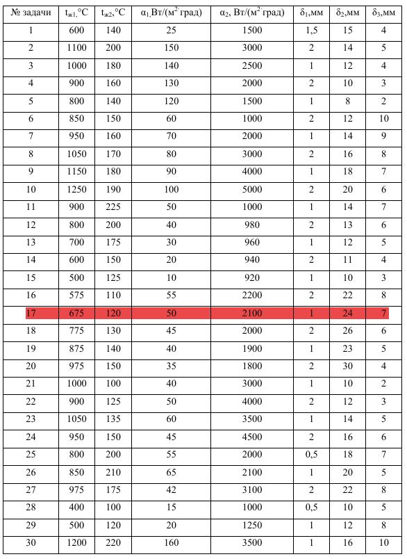 ДЗ 1: Теплопередача через многослойную плоскую стенку вариант 17