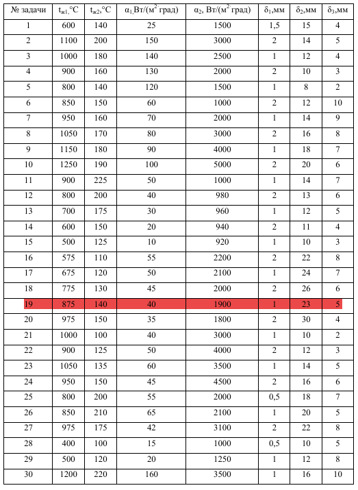ДЗ 1: Теплопередача через многослойную плоскую стенку вариант 19