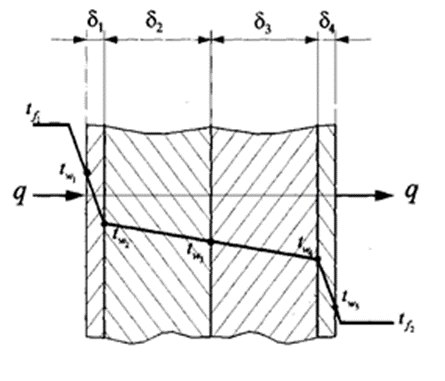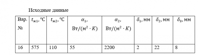 Теплопередача. Задание 1. Теплопроводность. Тепло дымовых газов передается через стальную стенку котла толщиной δ2 кипящей воде. Со стороны газов стенка покрыта слоем сажи толщиной δ1. Со стороны воды стенка покрыта слоем накипи толщиной δ3 и слоем м