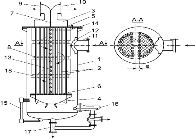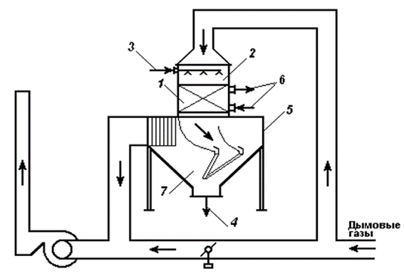 На изображении схемы контактного теплообменника с активной насадкой цифрой 2 обозначается … ![]()