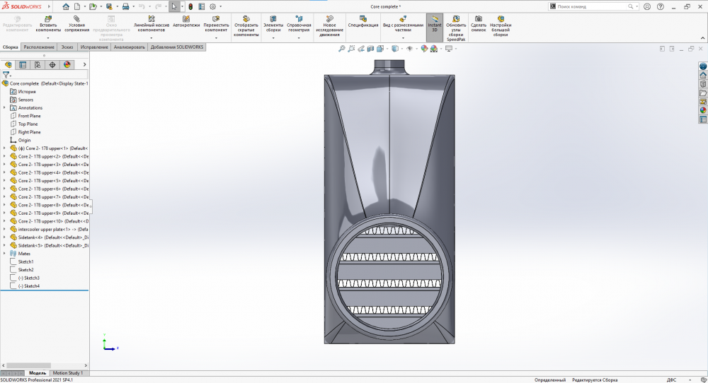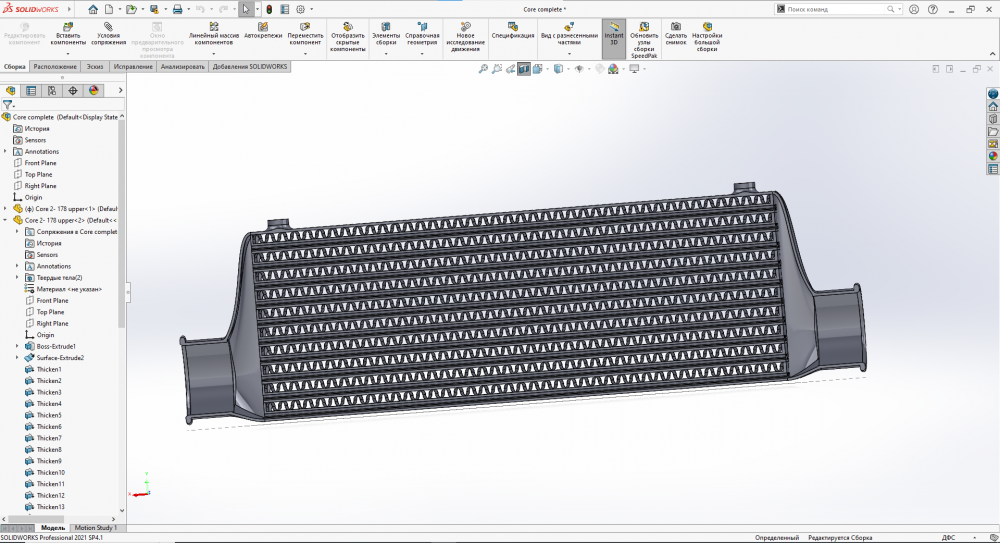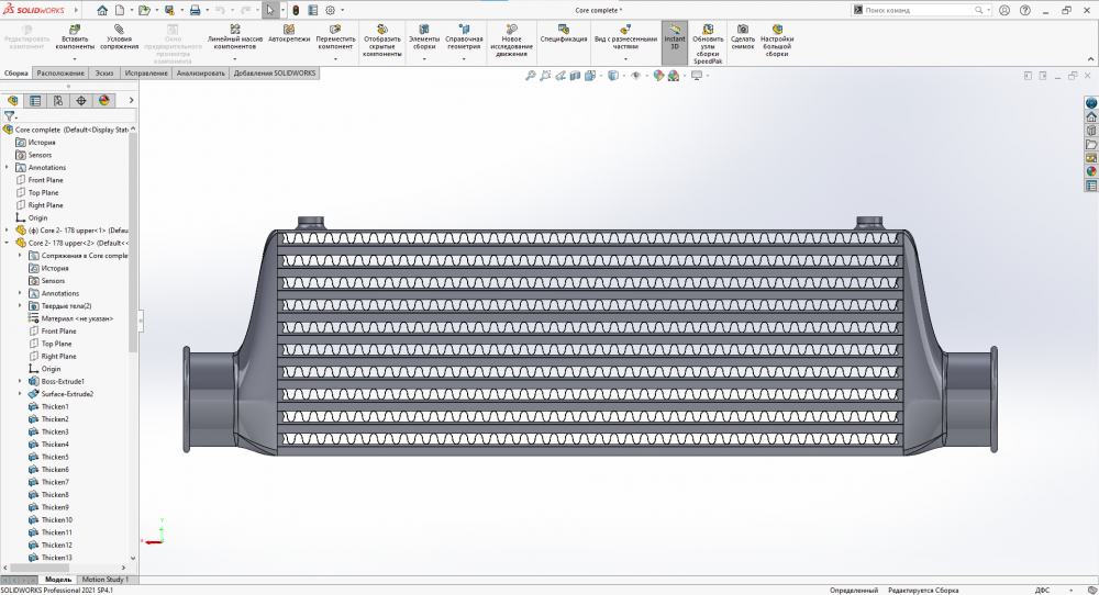 Интеркулер с рабочим ядром выполненным в SolidWorks / Intercooler with a working core made in SolidWorks