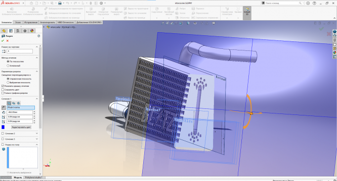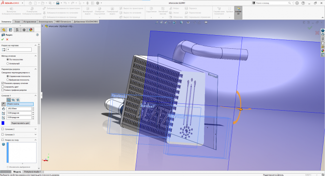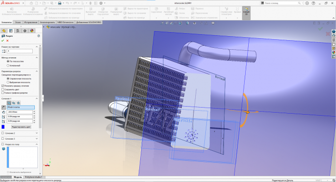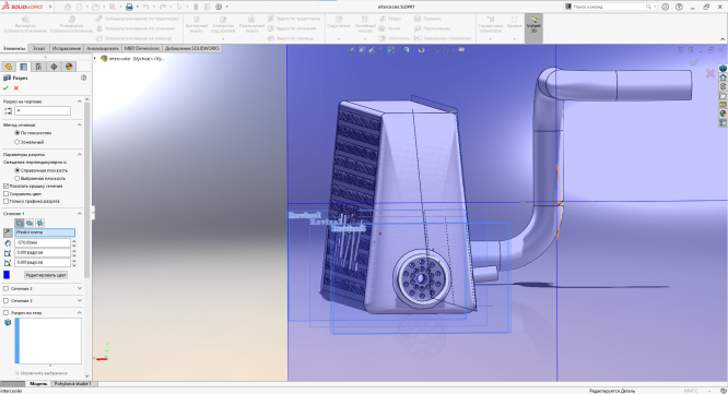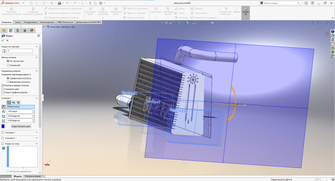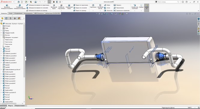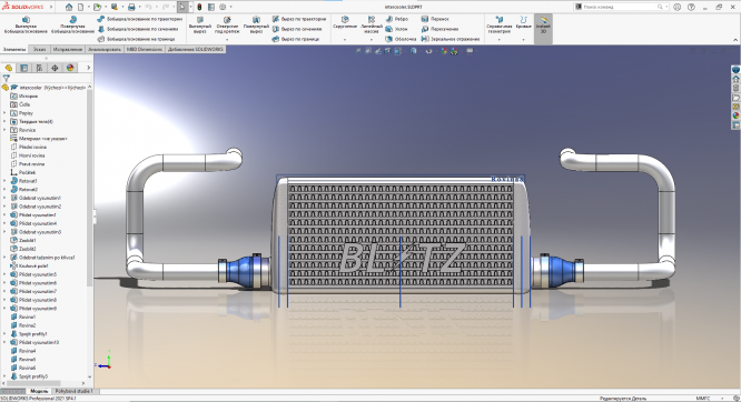 Интеркулер с рабочим ядром охлаждаемым жидкостью/хладогентом выполненный в SolidWorks / Intercooler with a working core cooled by liquid/coolant made in SolidWorks