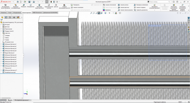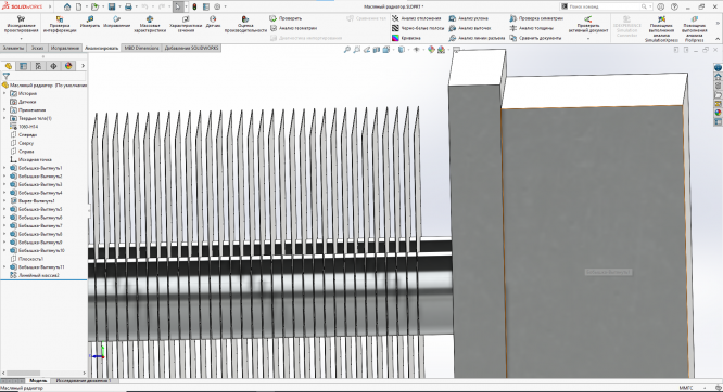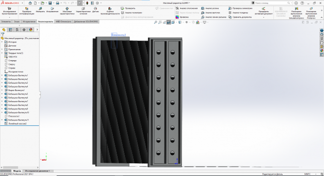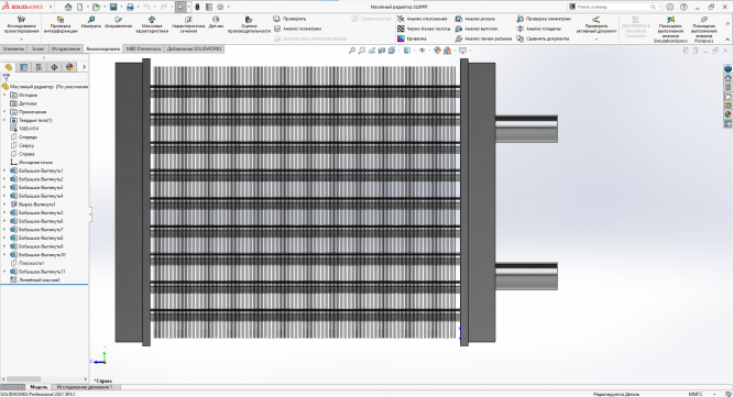 Радиатор для масла для автомобиля Вода-Воздух. Габариты ядра 200х175х40 3D модель для расчетов полностью смоделирована в SolidWorks. Также сохранена в Step и Parasolid .x_t Автомобильный масляный радиатор для двигателя внутреннего сгорания (ДВС) для охлаждения масла после картера. Воздушное охлаждение, трубчатый. Трубки круглой формы. Есть возможность редактирования геометрии. 3д модель радиатора. Трубчатый радиатор. Гофра для радиатора. Фольга. Алюминий материал. Пластинчатый. Radiator for oil The radiator of the car is Water-Air. Core dimensions 350x160x26 - specifications № Nissens 72041 MERCEDES-BENZ | SPRINTER SERIES B906 (2007) | SPRINTER 209D 2.2 CDI, Group : Stove The 3D model for calculations is fully modeled in SolidWorks.