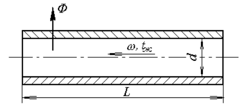 По трубе внутренним диаметром d, мм и длиной L, м протекает вода со скоростью ω м/с. Средняя температура воды – t, °С, а внутренней стенки трубы – tс, °С. Определите коэффициент теплоотдачи от воды к стенке трубы и передаваемый тепловой поток.