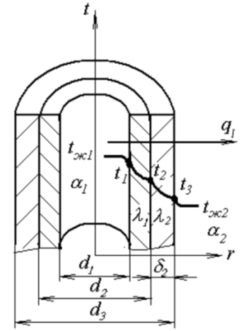 Паропровод диаметром 2 1 d2 / d1 покрыт двухслойной изоляцией. Расчетная схема паропровода: