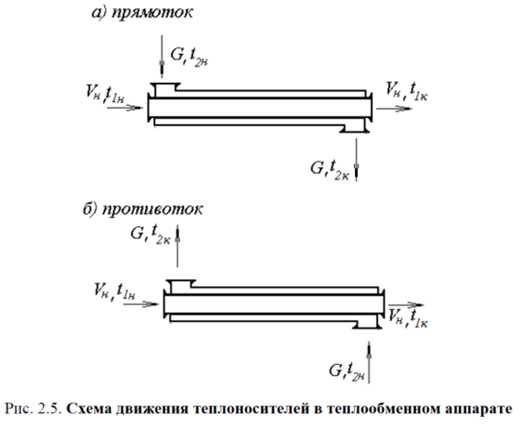 Объемный расход топочных газов при нормальных условиях Vн, м3/ч, средний коэффициент теплоотдачи от воздуха к поверхности нагрева α1, Вт/(м2·К), от поверхности нагрева к воде α2 = 500 Вт/(м2·К), коэффициент теплопроводности материала стенки трубы (стали) λ = 50 Вт/(м·К), начальные и конечные температуры газа и воды равны соответственно t 1.н, t 1.к , t 2.н и t 2.к ,°С, теплоемкость топочных газов сг = 1,15 кДж/(кг·К), плотность ρг = 1,23 кг/м3. Определите также расход воды G, кг/ч через теплообменник. Изобразите график изменения температур теплоносителей для обеих схем. Исходные данные для расчета приведены в таблице.