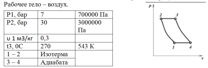- Определить основные параметры состояния р, υ, T в характерных точках цикла;