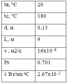 температура поверхности трубы tс, °С. Определите величину коэффициента теплоотдачи от трубы к воздуху, а также тепловой поток, теряемый трубой.