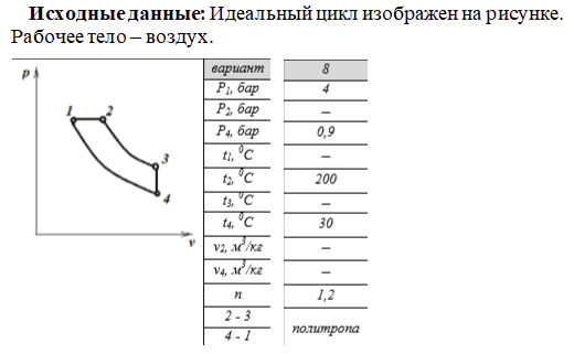 2. Определить для каждого процесса, входящего в цикл, Δu, Δs, q, l; 3. Определить термический кпд ŋt цикла.
