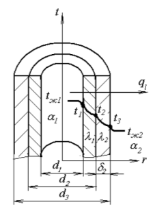 Паропровод диаметром 2 1 d2 / d1 покрыт двухслойной изоляцией.