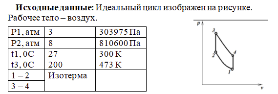 1. Определить основные параметры состояния р, υ, T в характерных точках цикла; 2. Определить для каждого процесса, входящего в цикл, Δu, Δs, q, l;