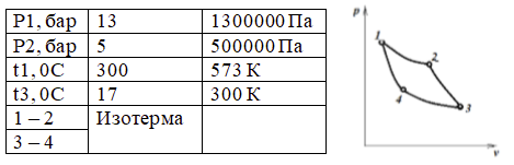 Исходные данные: Идеальный цикл изображен на рисунке. Рабочее тело – воздух.![]()