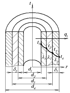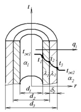 Паропровод диаметром d2 / d1 покрыт двухслойной изоляцией (рис. 2.1).