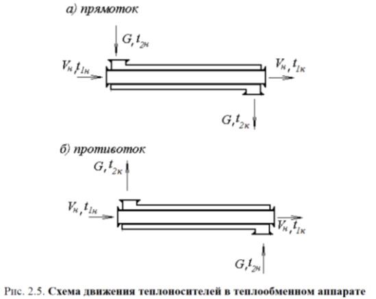 Определите поверхность нагрева стального рекуперативного газо-воздушного теплообменника (толщина стенок δс = 3 мм) при прямоточной и противоточной схемах движения теплоносителей (рис. 2.5).
