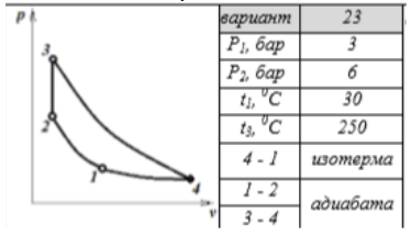 Исходные данные: Идеальный цикл изображен на рисунке. Рабочее тело – воздух.