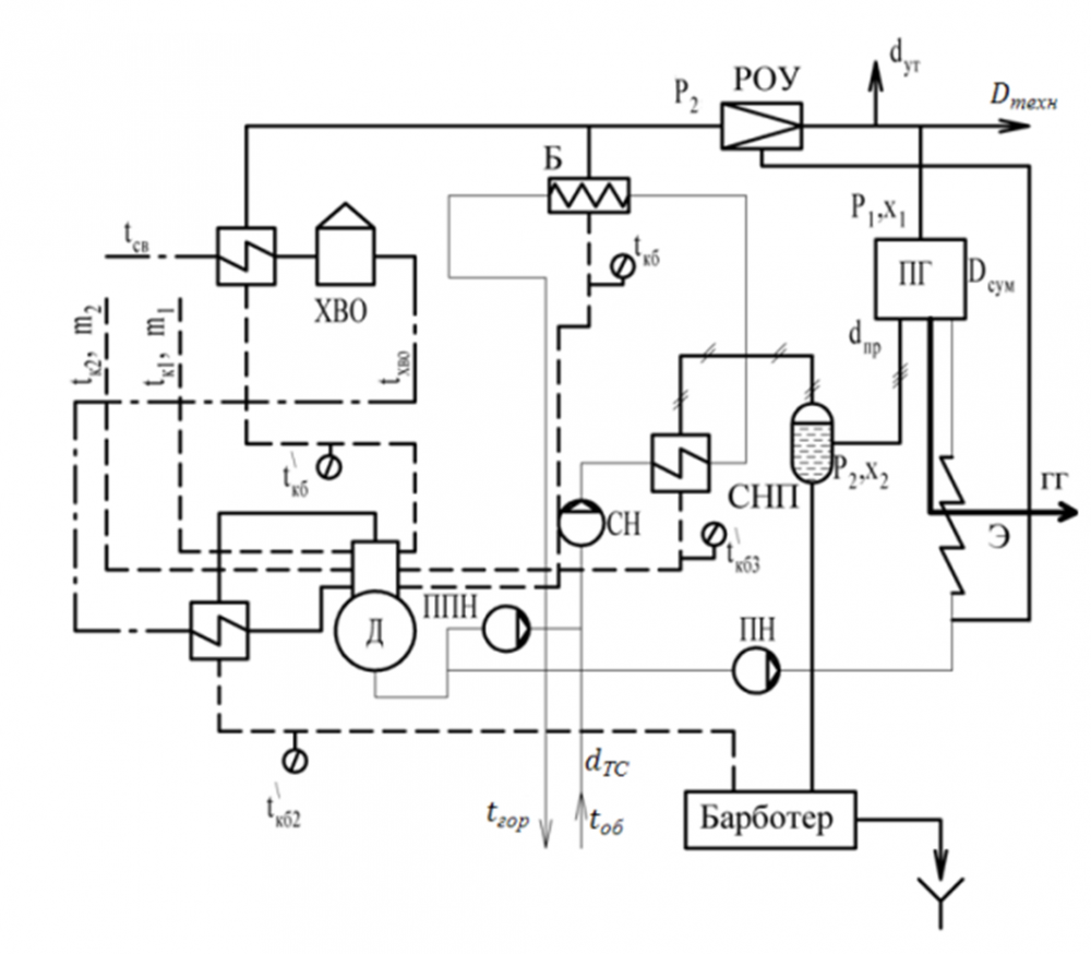Тепловая схема во многом определяет экономичность работы котельной. По- дробный расчёт тепловой схемы с составлением его теплового баланса позволяет определить экономические показатели котельной, расхода пара и воды, по которым производится выбор основного и вспомогательного оборудования.