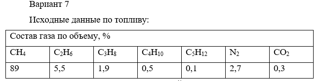 Рассчитать: 1. Теплоту сгорания газа по его составу; 2. Определить объем воздуха необходимого для сжигания 1м3 (V^0); 3. Определить объемы продуктов сгорания (V_(RO_2 ), V_(N_2)^0, V_(H_2 O)^0).