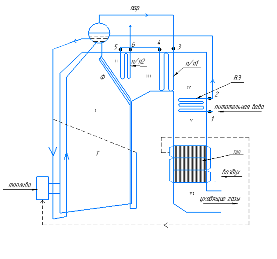 ВЭ – водяной экономайзер; ТВП – воздухоподогреватель;