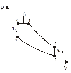Рис. 1. Идеальный цикл поршневого двигателя внутреннего сгорания с изохорно-изобарным расширением