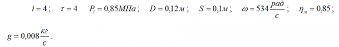 Главная » Учебные материалы » Термодинамика и тепломассообмен » Решения задач » Несколько классов/семестров » Определить литровую мощность и удельный индикаторный расход топлива четырехцилиндрового (i = 4) четырехтактного (τ = 4) двигателя, если среднее индикаторное давление равно Pi (Па). Диаметр цилиндра D = 0,12 м, ход поршня S = 0,1 м, угловая скорость в