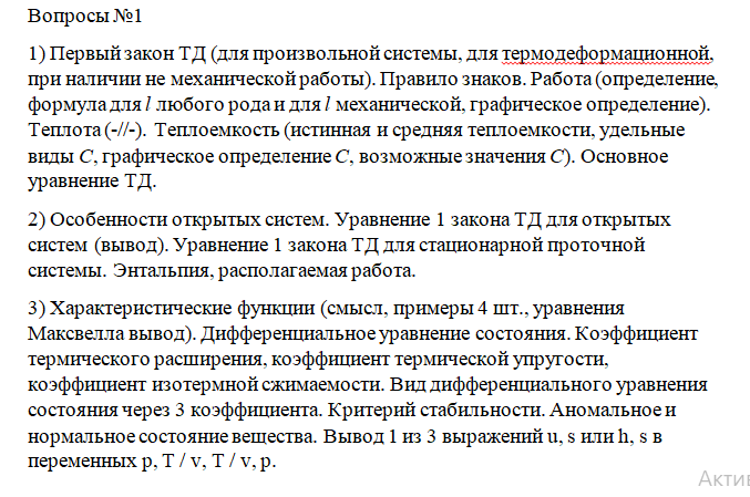 Для студентов МГТУ им. Н.Э.Баумана по предмету Термодинамика и теплопередачаОтветы на вопросы первого рубежного контроляОтветы на вопросы первого рубежного контроля