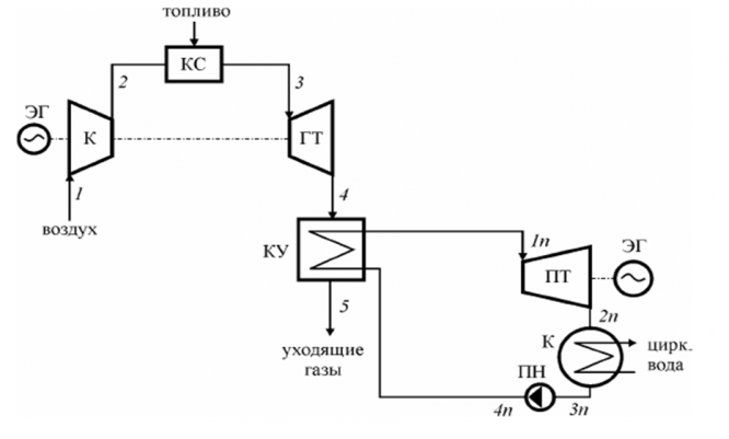 Рис. 3.1 - Принципиальная схема парогазовой установки