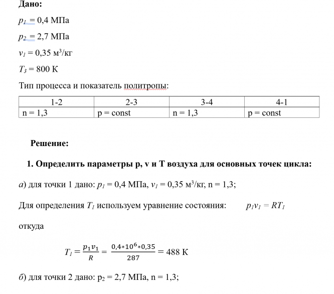 1. Рассчитать давление р, удельный объем u, температура Т воздуха для основных точек цикла;