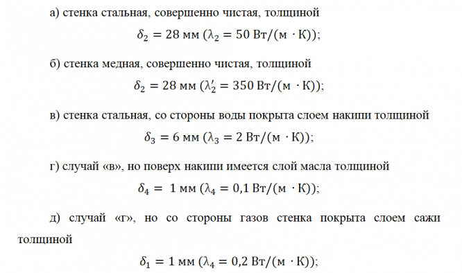 1. Подсчитать термические сопротивления , коэффициенты теплоотдачи , эквивалентные коэффициенты теплопроводности и количества передаваемого тепла от газов к воде через стенки за для следующих случаев: