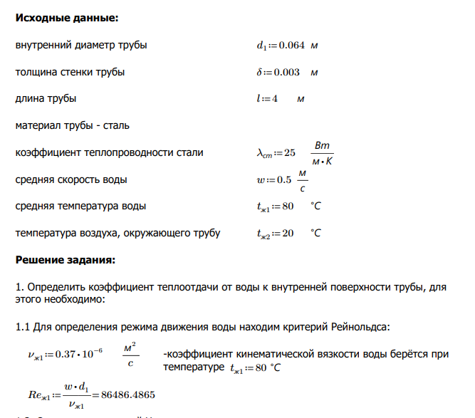 Тепло горячей воды, движущейся внутри круглой горизонтальной трубы, передаѐтся воздуху, омывающему трубу по наружной поверхности свободным потоком.