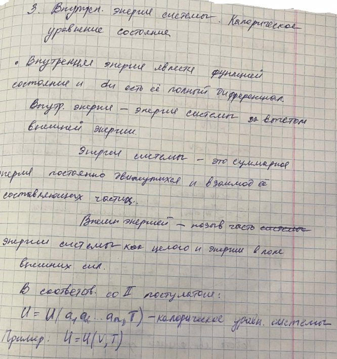 - Внутренняя энергия системы. Калорическое уравнение состояния.