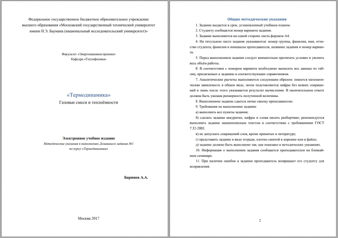 Главная » Учебные материалы » Термодинамика » Книги » МГТУ им. Н.Э.Баумана » Несколько классов/семестров » Методические указания к выполнению Домашнего задания №1