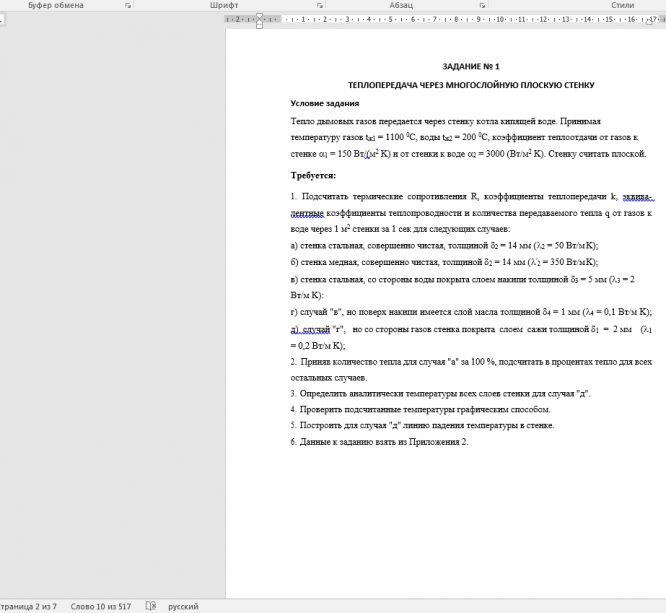 - Подсчитать термические сопротивления R, коэффициенты теплопередачи k, эквива- лентные коэффициенты теплопроводности и количества передаваемого тепла q от газов к воде через 1 м2 стенки за 1 сек для следующих случаев: