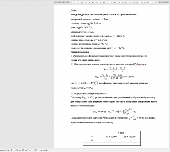 Тепло горячей воды, движущейся внутри круглой горизонтальной трубы, передаётся воздуху, омывающему трубу по наружной поверхности свободным потоком.