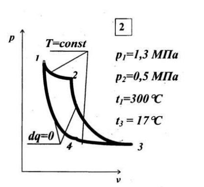 Условие задания. Сухой воздух массой 1 кг совершает прямой термодинамический цикл, состоящий из четырех последовательных термодинамических процессов. Данные, необходимые для расчета в зависимости от варианта, приведенного в таблице 1.